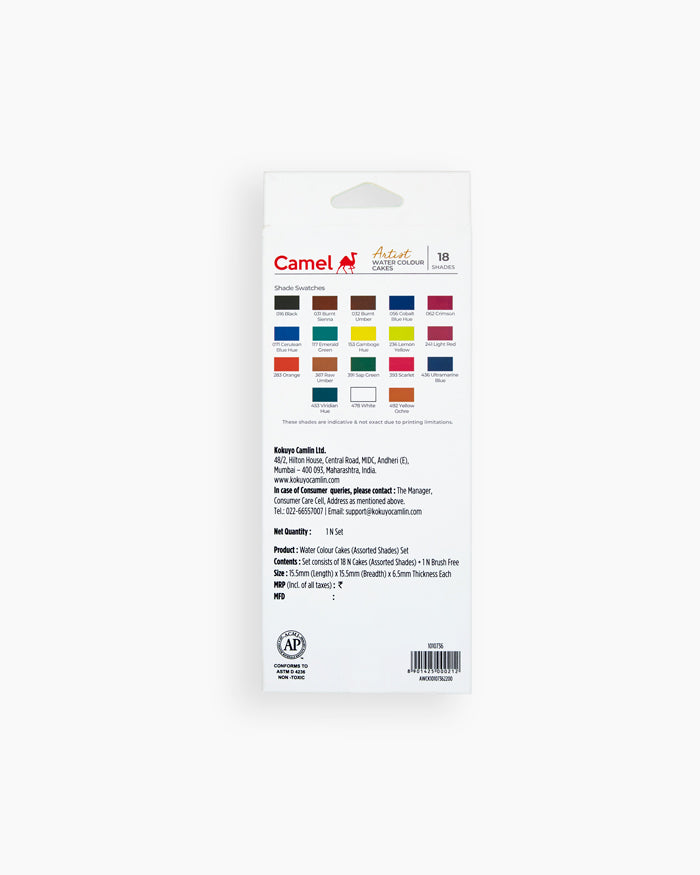 Camel Artist Water Colours (Assorted box of cakes, 18 shades with Brush )