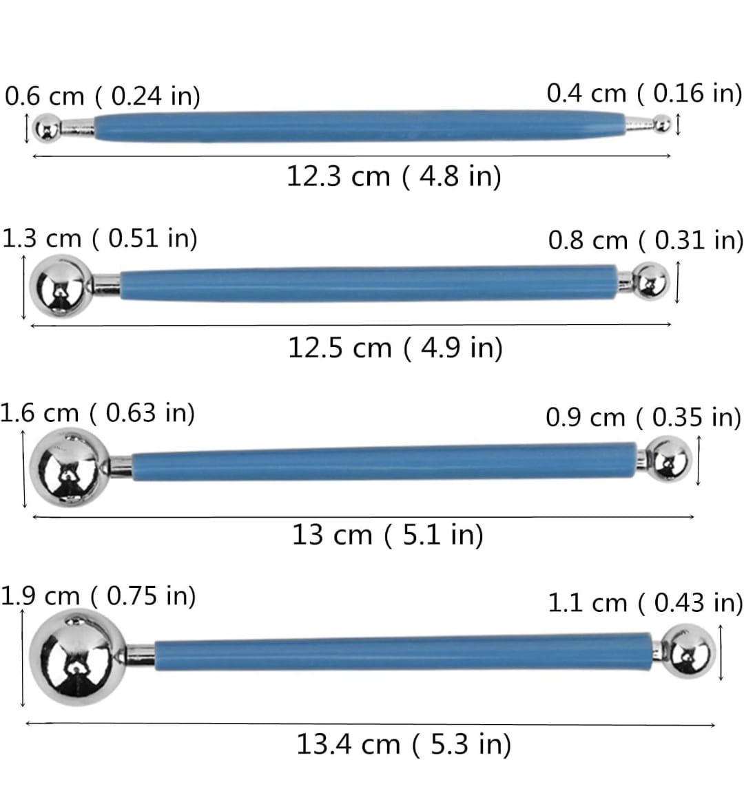 - IDEAL TOOLS FOR MODELLING: The ball modelling tool is ideal for shaping, filling, petals and leaves, eye sockets and other shapes that have been made with gum paste, sugar paste or marzipan etc.. Also used for pottery and clay handmade crafts, such as Indentation sculpting, dig a hole, shape joint link and curved surface treatment.